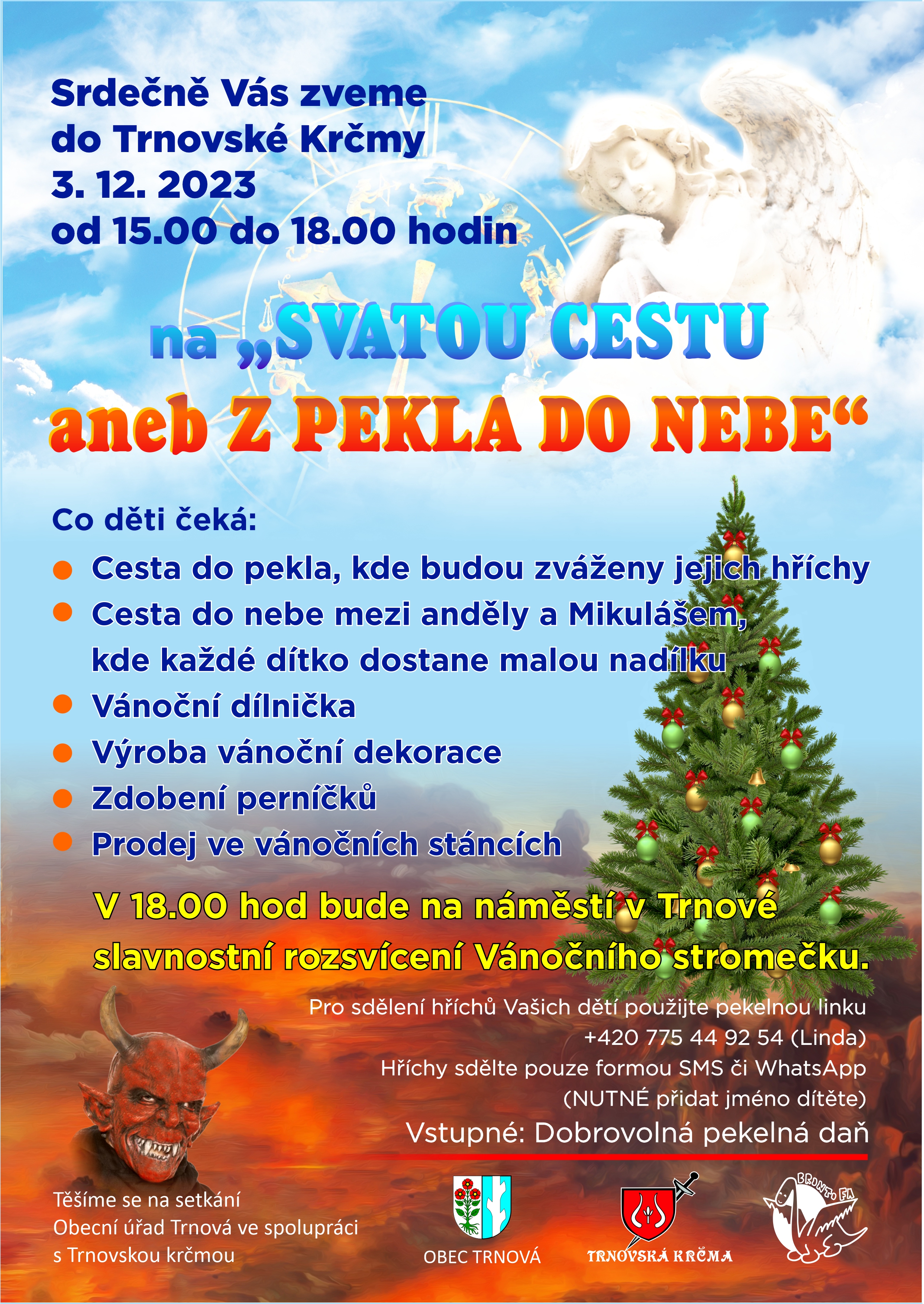 Zveme všechny zlobivé i hodné děti v 15:00 na Mikuláškou do Trnovské krčmy. V 18:00 pak půjdeme společně rozvítit vánoční strom.